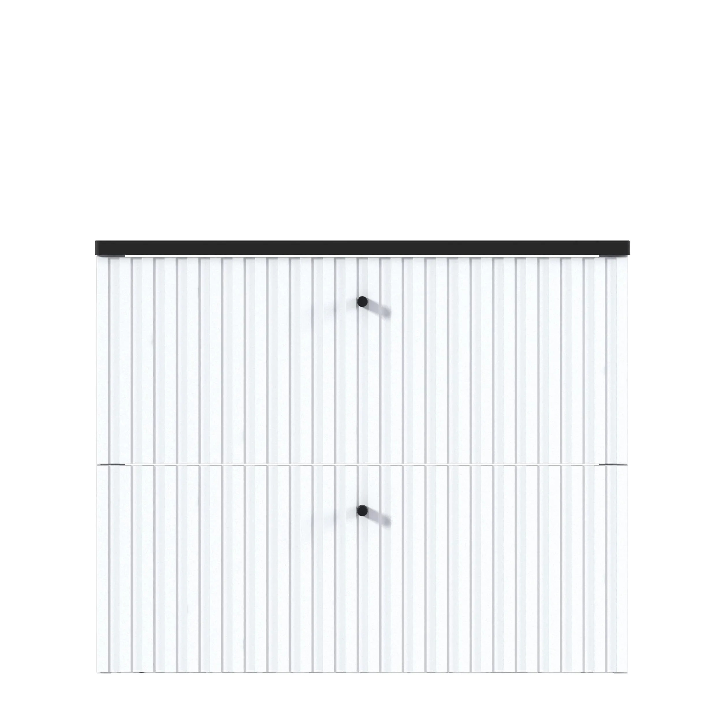 Тумба Desire – изящное решение для интерьера ванной комнаты. Рельефный фасад создает ритмичную игру света и теней. Черные ручки-кнопки контрастируют с белым фасадом и подчеркивают её современный дизайн.