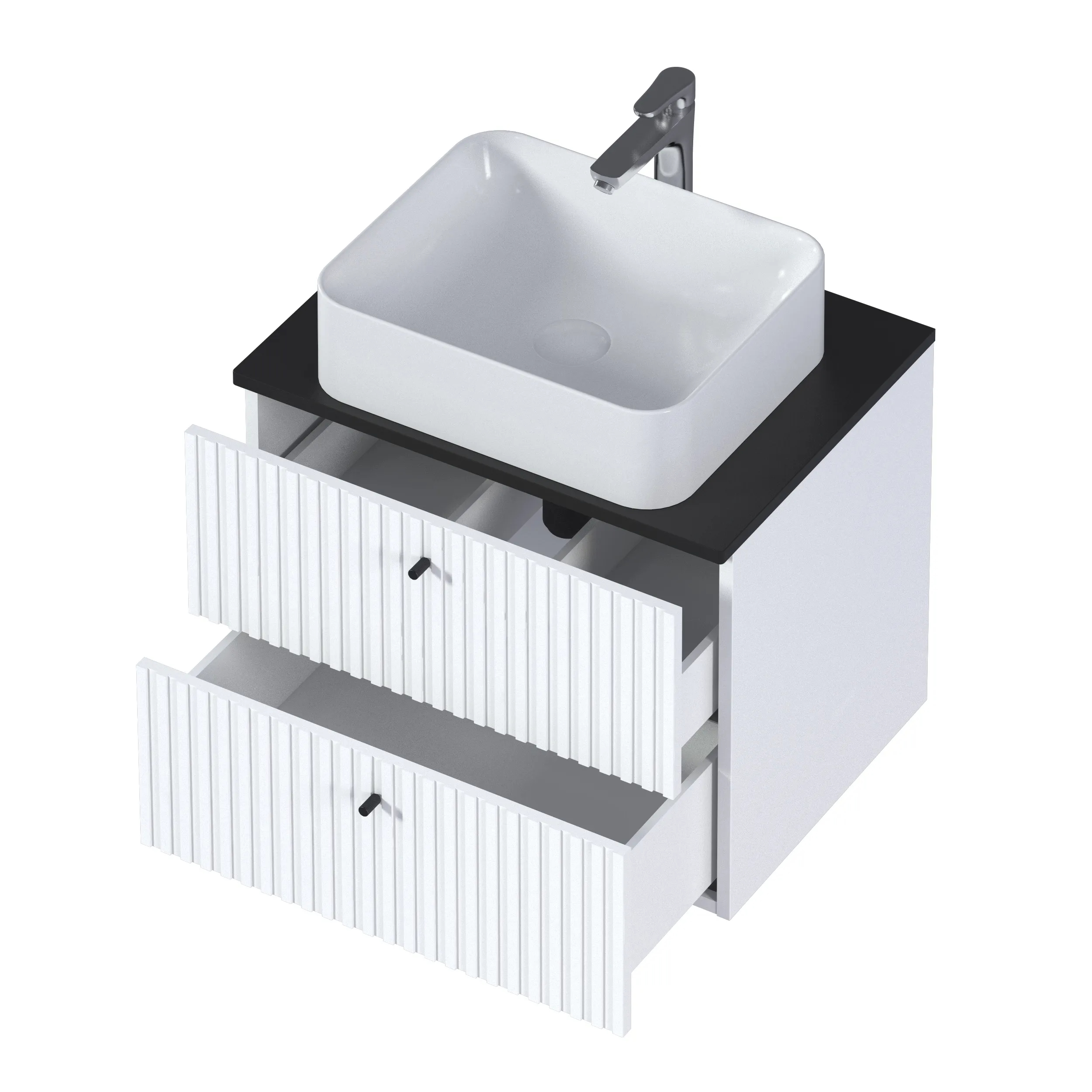 Тумба подвесная 1Marka Desire 600x500x487 белый + черная столешница (Ц0000026589)