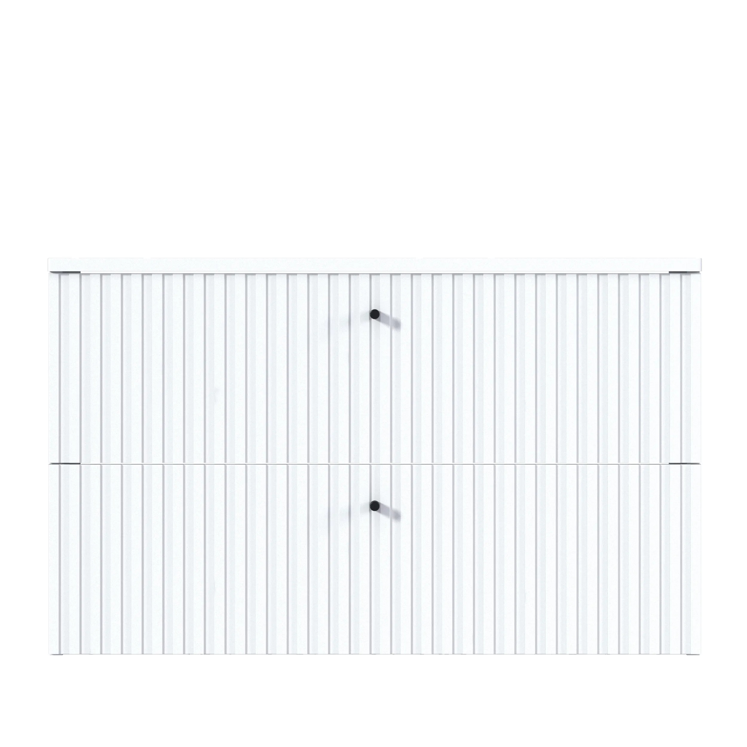 Тумба Desire – изящное решение для интерьера ванной комнаты. Рельефный фасад создает ритмичную игру света и теней. Черные ручки-кнопки контрастируют с белым фасадом и подчеркивают её современный дизайн.