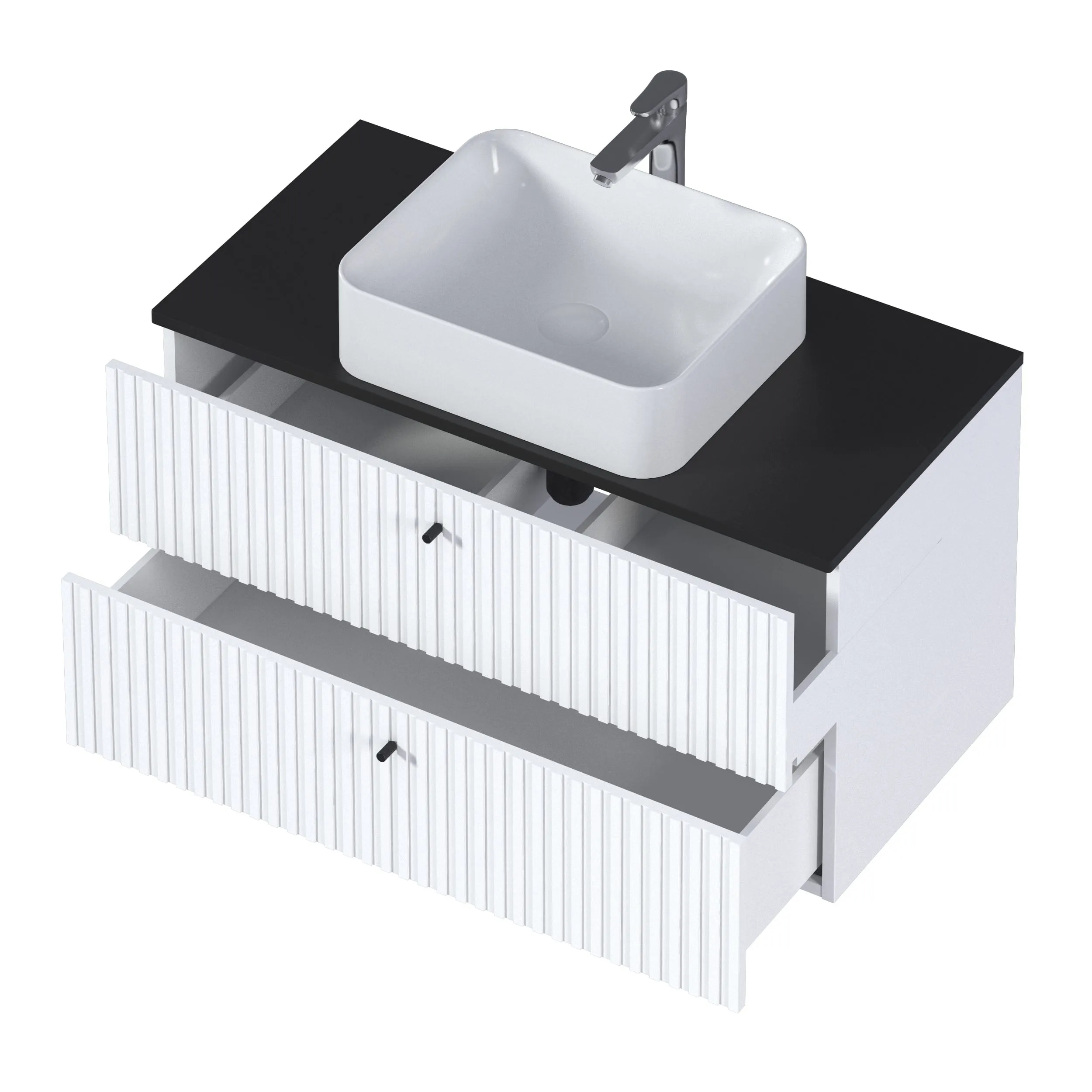 Тумба подвесная 1Marka Desire 900x500x487 белый + черная столешница (Ц0000026591)