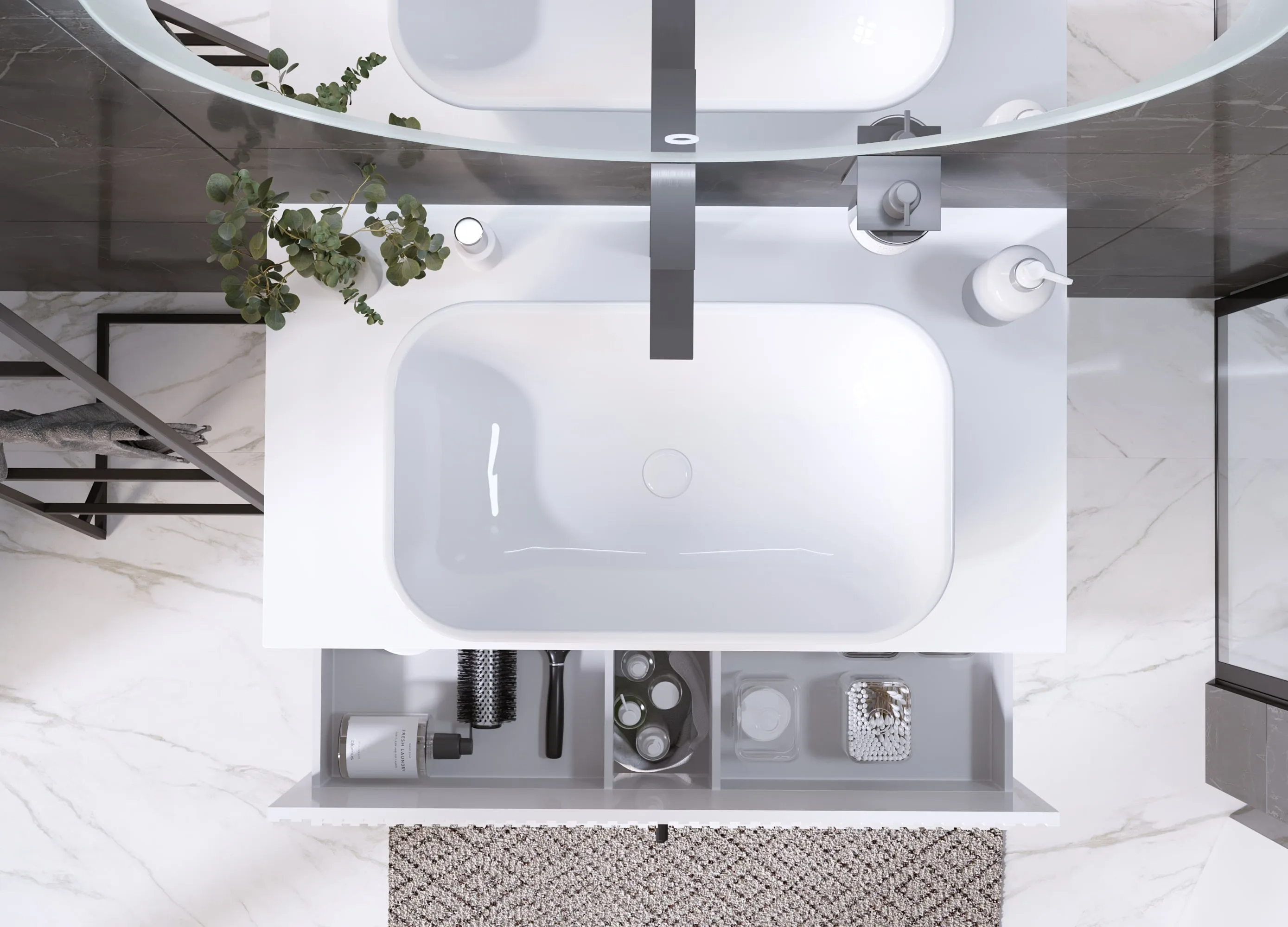 Тумба с двумя просторными выдвижными ящиками обеспечивают удобное хранение различных предметов. Desire станет отличным дополнением к ванной комнате, сочетая в себе функциональность и элегантный дизайн.
