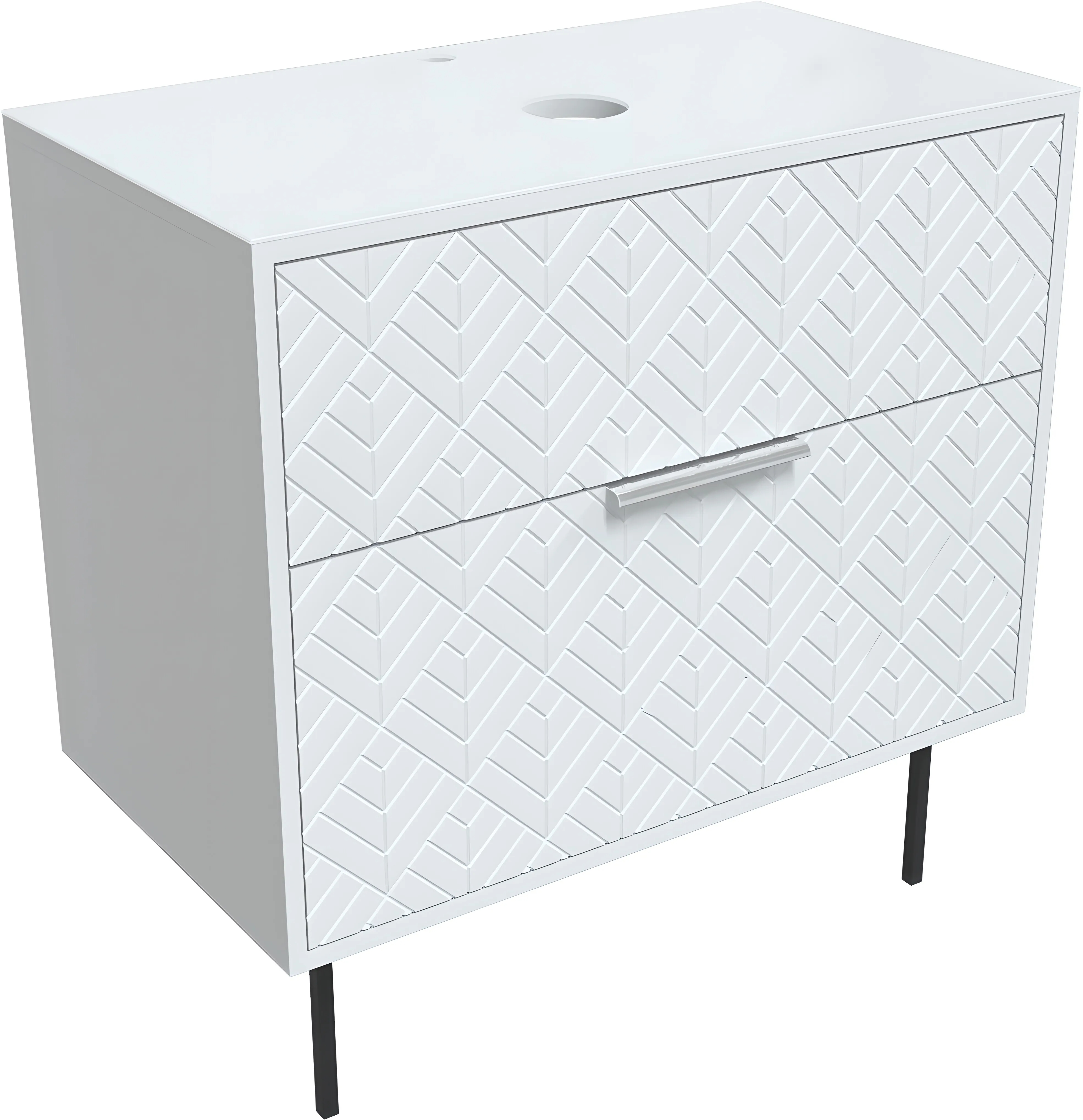Ручка добавляет тонкий акцент и обеспечивает удобство в использовании, сочетаясь с общей концепцией чистоты и простоты. Поверхности изделия легко очищаются, что делает тумбу отличным выбором для помещений с повышенной влажностью.