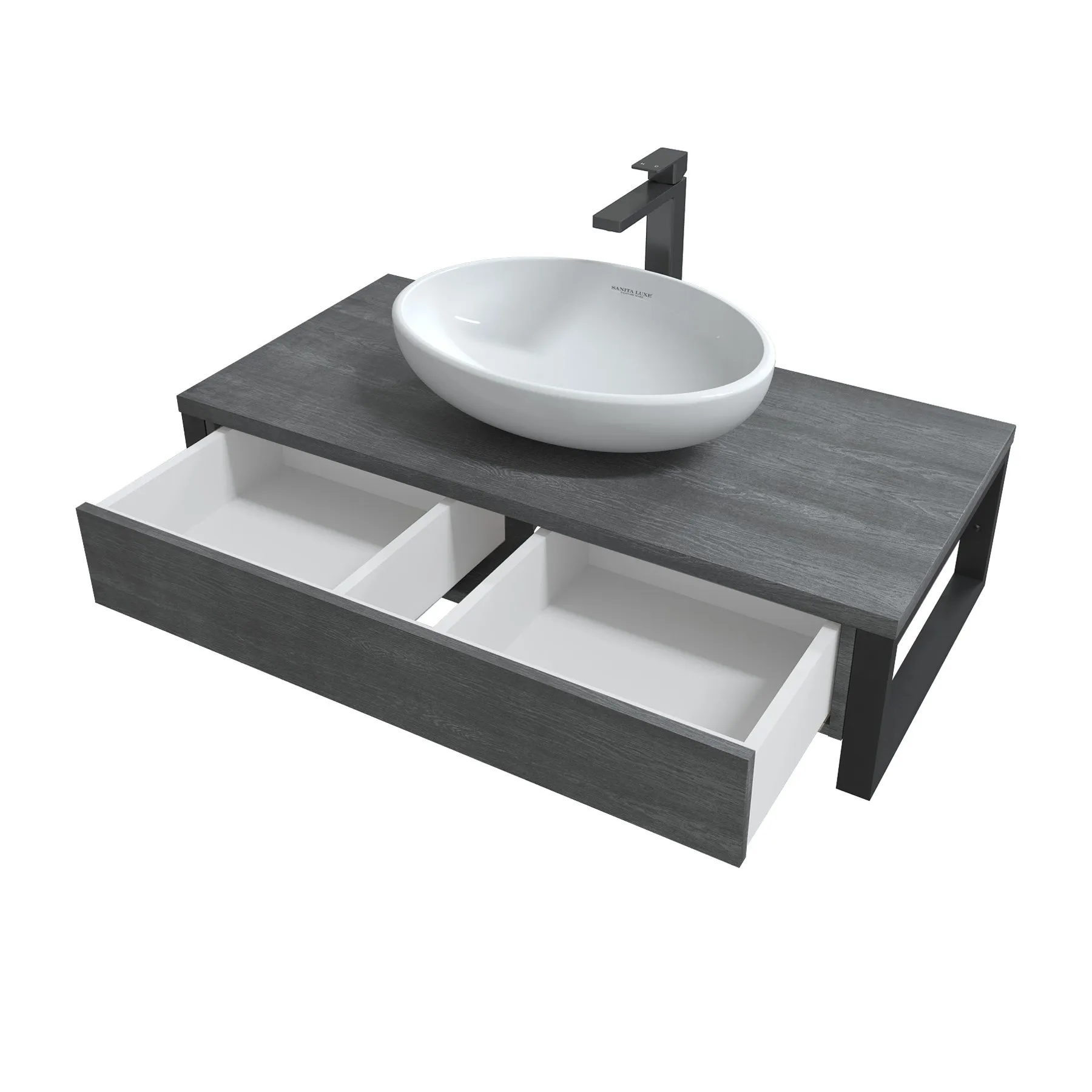 Подвесная тумба GRUNGE LOFT под накладную раковину – стильное решение для современного интерьера. Трендовый фактурный фасад в темном графитовом оттенке становится привлекательным акцентом в ванной. Грубая текстура и глубокий серый цвет символизируют силу и уверенность, также придают интерьеру свой неповторимый почерк.