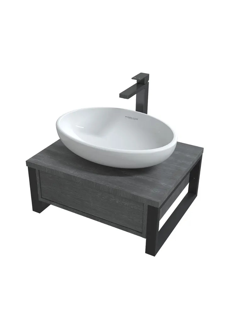 Подвесная тумба GRUNGE LOFT под накладную раковину – стильное решение для современного интерьера. Трендовый фактурный фасад в темном графитовом оттенке становится привлекательным акцентом в ванной. Грубая текстура и глубокий серый цвет символизируют силу и уверенность, также придают интерьеру свой неповторимый почерк.