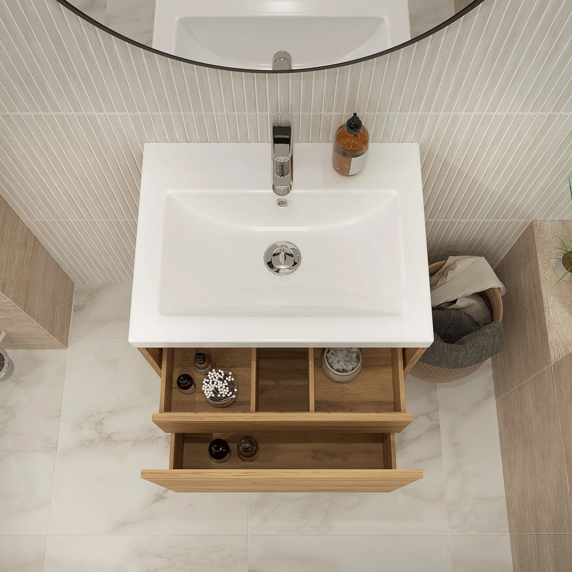 Тумба под раковину подвесная 60 см в японском стиле – элегантное и функциональное решение для ванной комнаты! Древесная текстура цвета Дуб Вотан добавляет теплоты и уюта в любой интерьер.