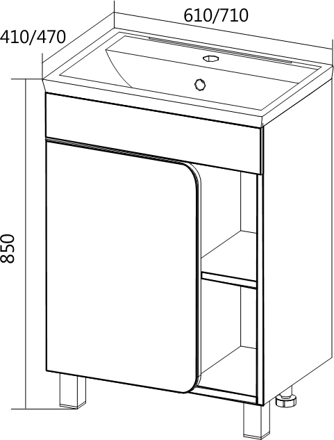 - Размеры с раковиной (ШxВxГ): 71x85x47 см.