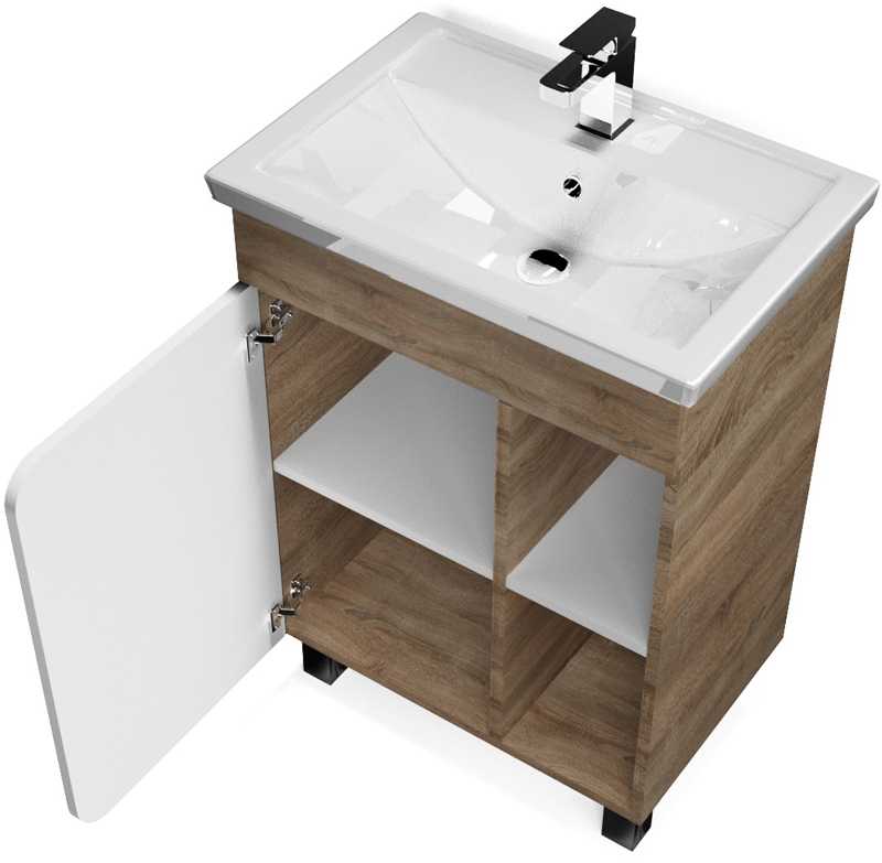 - Элегантная напольная тумба под раковину 1MarKa Nuvo 70Н в цвете дуб сонома (У76063) с распашной дверцей выполнена в минималистичном современном стиле.