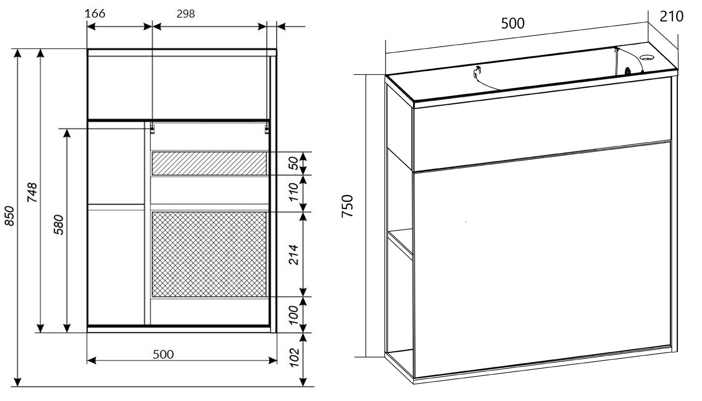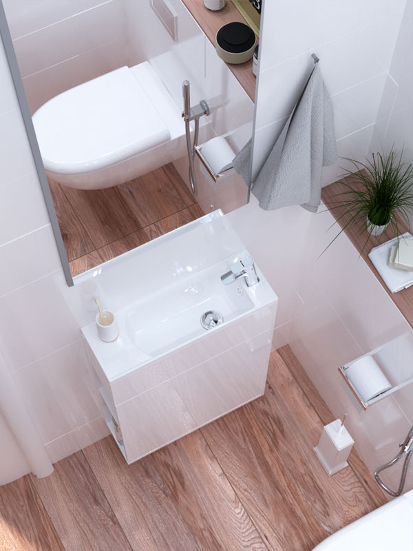 - Уникально узкая раковина из полимерной керамики - всего 21 см.