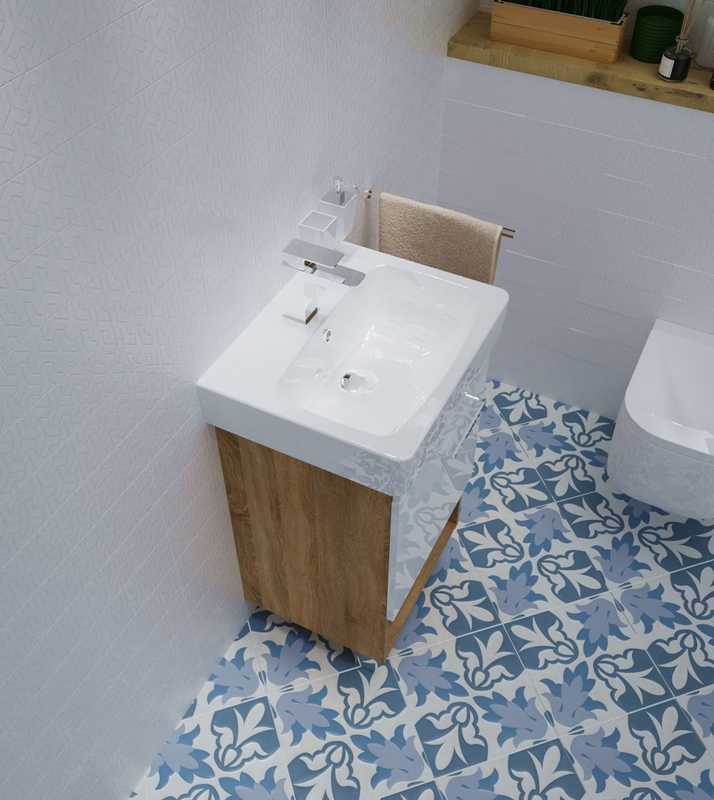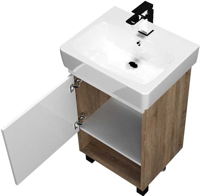 - Тумба под раковину 1MarKa Tera 50Н цвета дуб сонома (У76064) с одной распашной дверцей и открытой нижней полкой сочетает в себе элегантность и практичность.