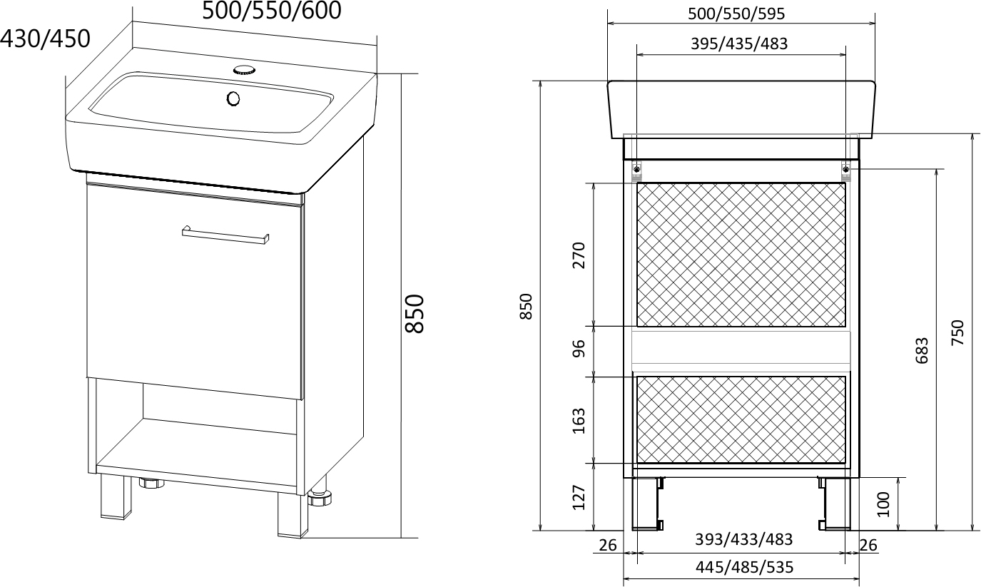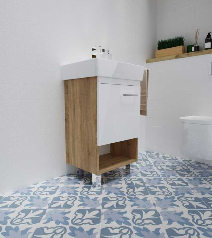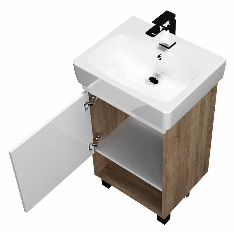 - Тумба под раковину 1MarKa Tera 60Н цвета дуб сонома (У76065) с одной распашной дверцей и открытой нижней полкой сочетает в себе элегантность и практичность.
