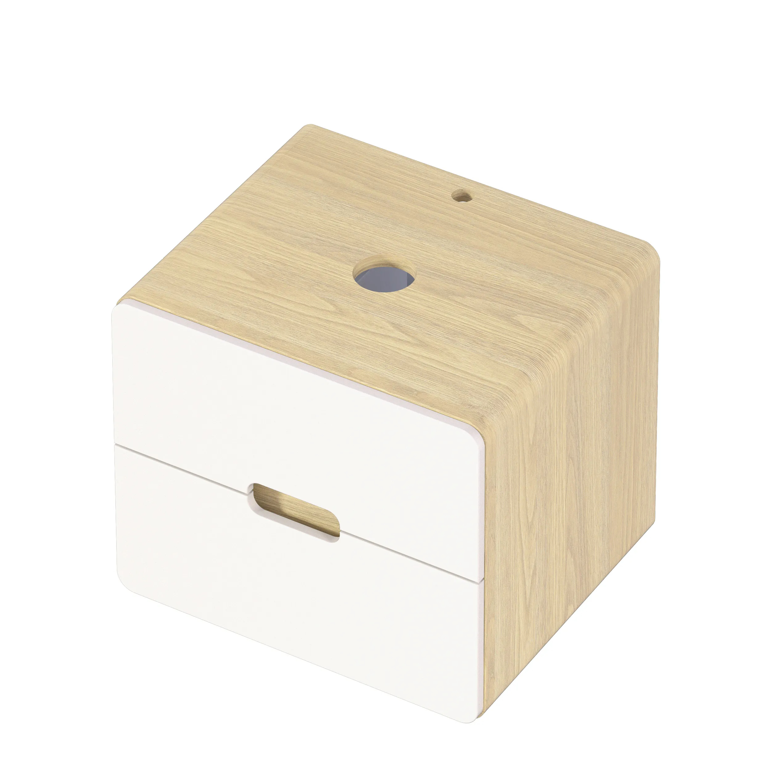 Интегрированные ручки становятся стильным дополнением тумбы.