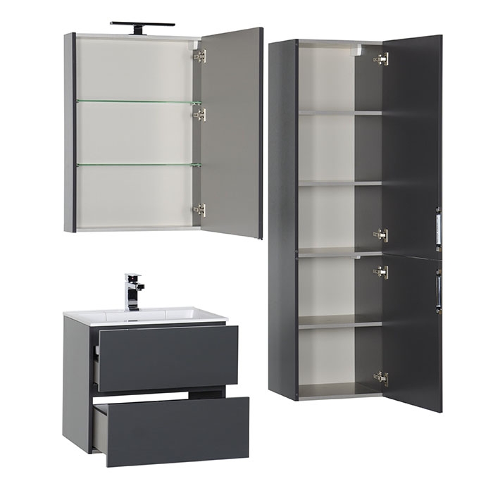 Раковина для тумбы Цвет и Стиль Фортуна 100, Зеркало-шкаф Aquanet Алвита 100 серый антрацит, Шкаф-пенал для ванной Aquanet Алвита 35 серый антрацит