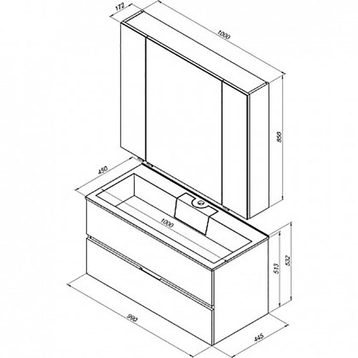 Тумба подвесная Aquanet Алвита 100 серый антрацит (00240112)