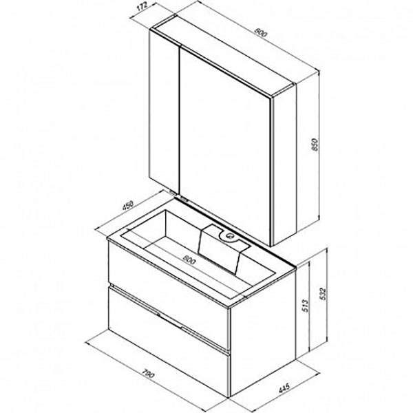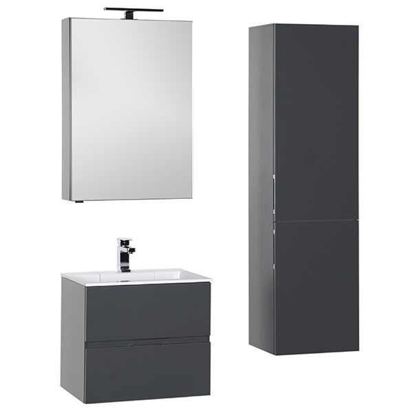 Раковина для тумбы Цвет и Стиль Фортуна 80, Зеркало-шкаф Aquanet Алвита 80 серый антрацит, Шкаф-пенал для ванной Aquanet Алвита 35 серый антрацит