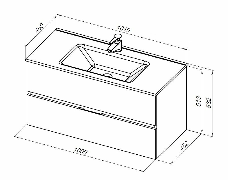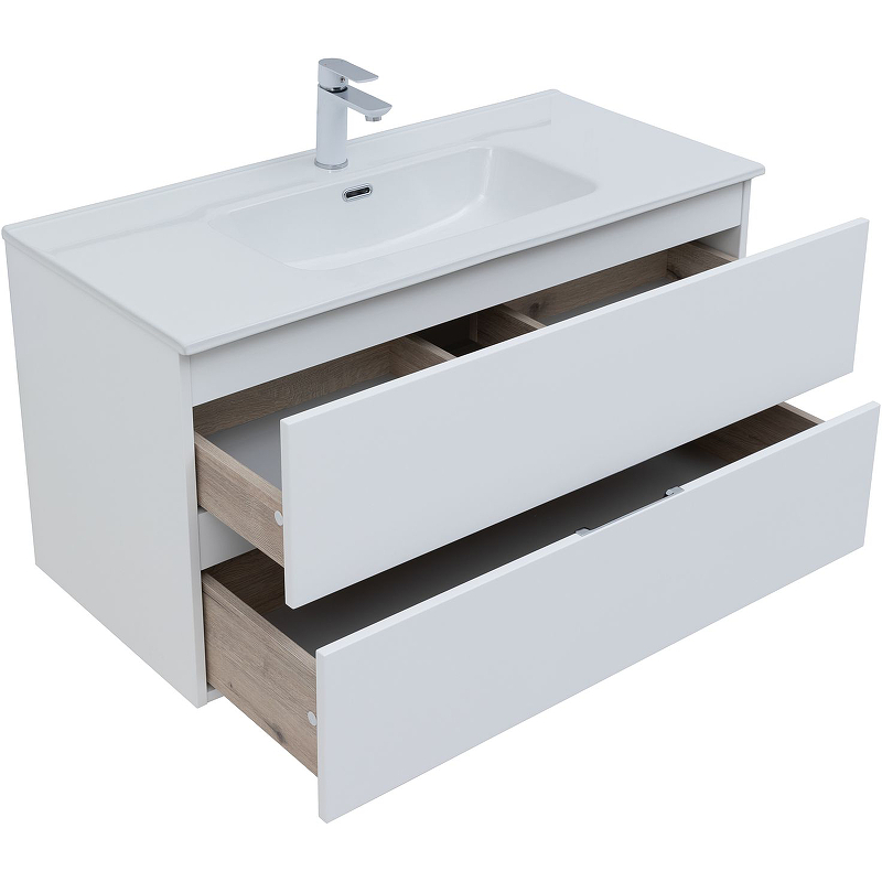 Тумба подвесная Aquanet Алвита New 100 2 ящика, белый матовый (00277518)