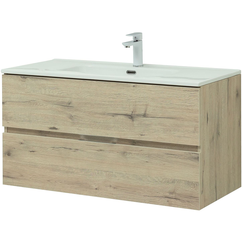 Тумба подвесная Aquanet Алвита New 100 2 ящика, дуб веллингтон белый (00277521)