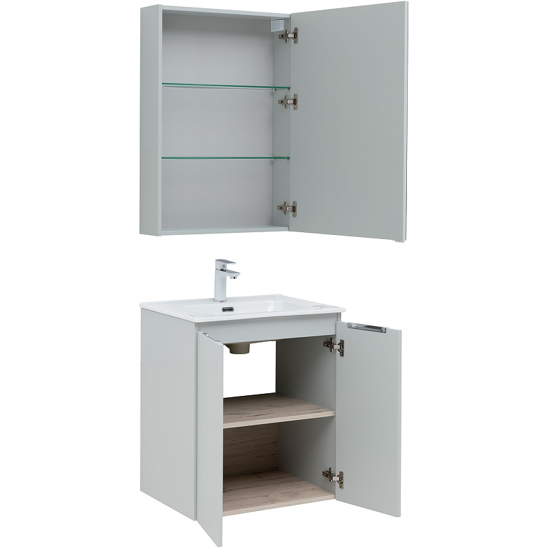 Зеркальный шкаф Aquanet Алвита New 60 Серый, Пенал Aquanet Алвита New 35 Серый, Раковина для тумбы Aquanet Flat 60