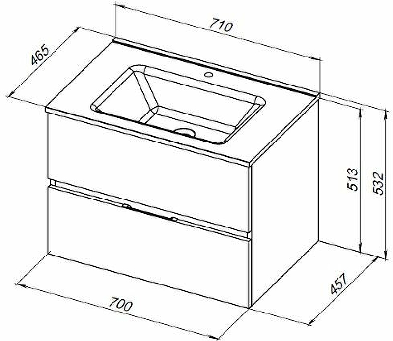 Тумба подвесная Aquanet Алвита New 70 2 ящика, белый матовый (00303909)