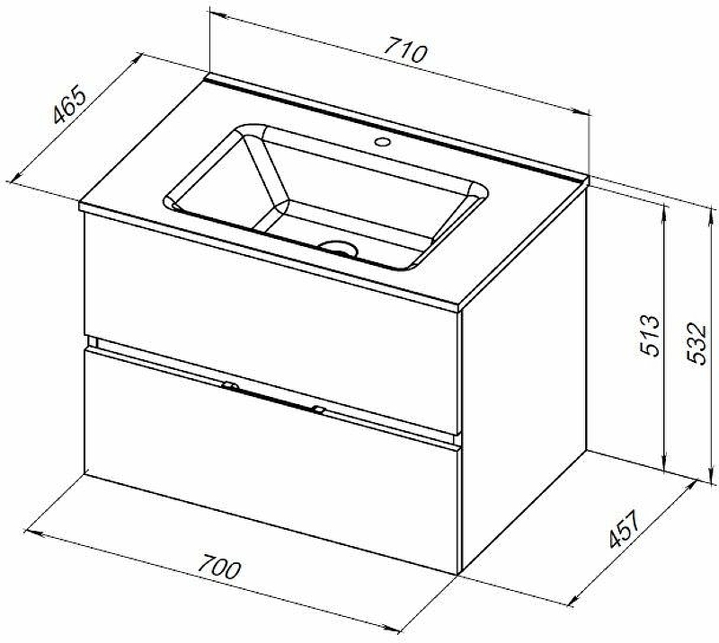 Тумба подвесная Aquanet Алвита New 70 2 ящика, серый (00303907)