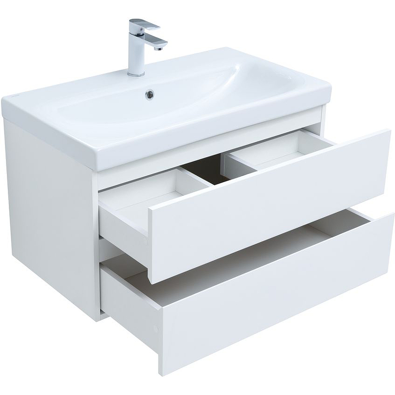 Тумба подвесная Aquanet Беркли 80 белый глянец (2 ящика) (00302351)