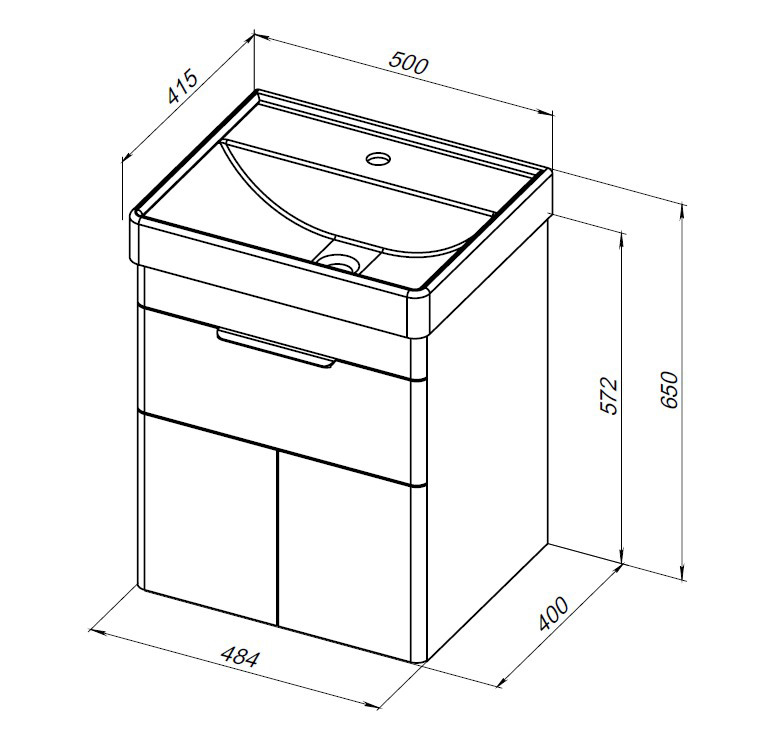 Тумба подвесная Aquanet Ирис new 50 белый глянец (1 ящик, 2 дверцы) (00310147)
