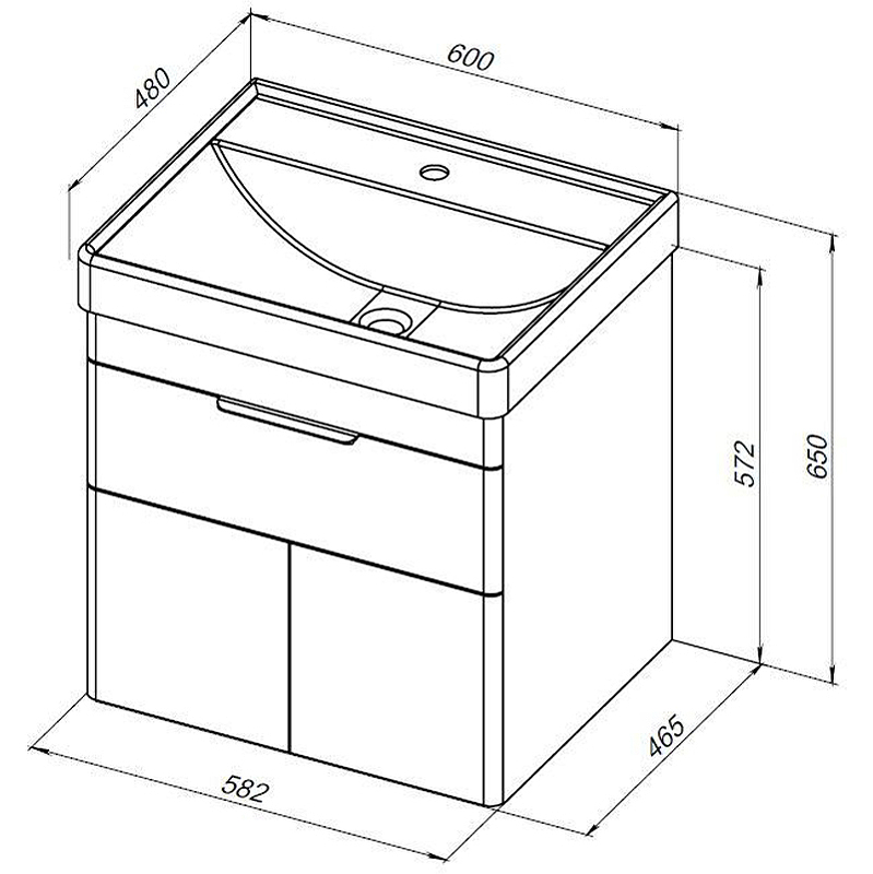 Тумба подвесная Aquanet Ирис new 60 белый глянец (1 ящик, 2 дверцы) (00310148)