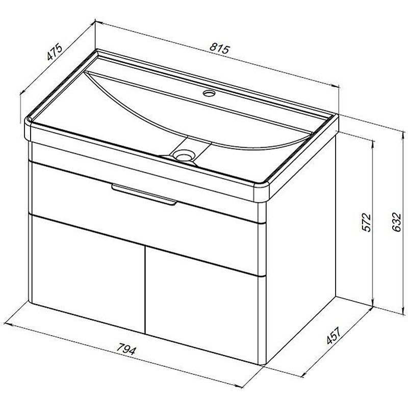Тумба подвесная Aquanet Ирис new 815 белый глянец (1 ящик, 2 дверцы) (00310150)