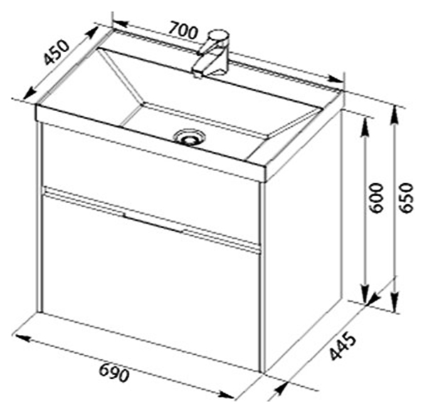 Тумба подвесная Aquanet Латина 70 белый (2 ящика) (00180032)