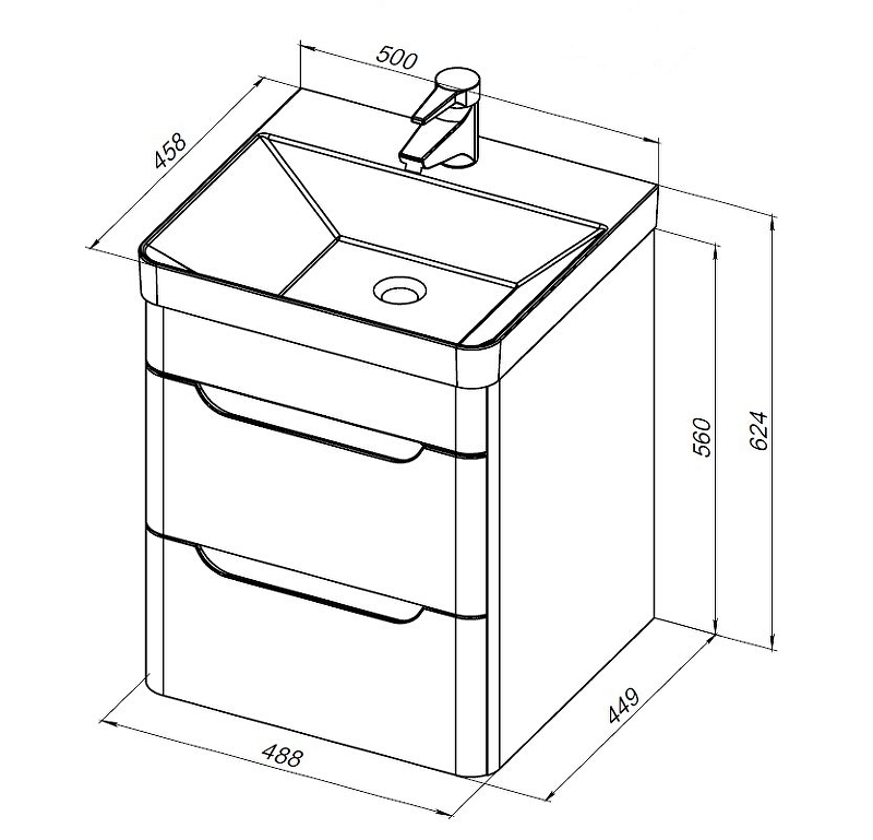 Тумба подвесная Aquanet София 50 белый глянец (2 ящика) (00274171)