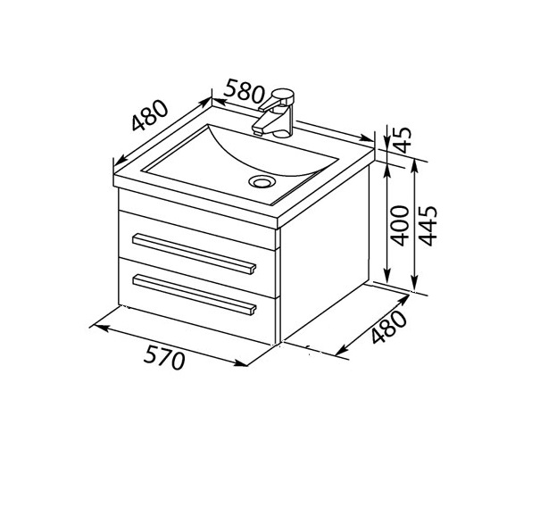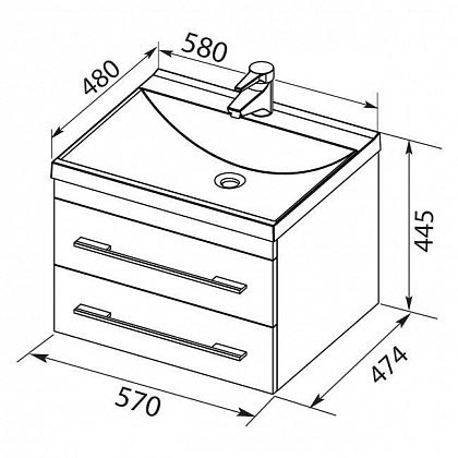 Тумба подвесная Aquanet Верона 58 New 480х570х400 2 ящика, белая (176667)