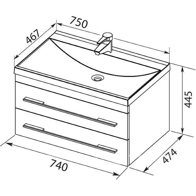 Раковина для тумбы Aquanet Нота 75 NEW, Раковина Aquanet Нота 75