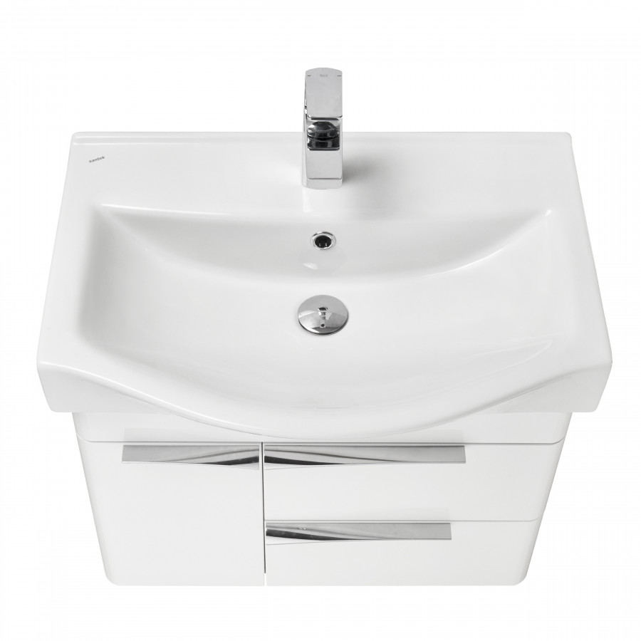 Тумба Беверли 65 в современном стиле, выполненная из влагостойкой ламинированной плиты и высококачественной MDF, обладает удобным функционалом. Слева за распашным фасадом-створкой находится вместительная ниша с регулируемой полкой из влагостойкой ламинированной плиты, а справа размещены два ящика, в которых поместятся необходимые в ванной комнате принадлежности. Петли снабжены доводчиками, а ящики - интегрированной системой плавного закрывания для комфорта и удобства потребителя. Изящные ручки в цвете глянцевый хром идеально сочетаются с линиями белоснежной керамической раковины Беверли бренда Santek. Тумба окрашена в белый цвет с высокой степенью глянца, что обеспечивает изделию привлекательный внешний вид, а также износостойкость и долговечность.