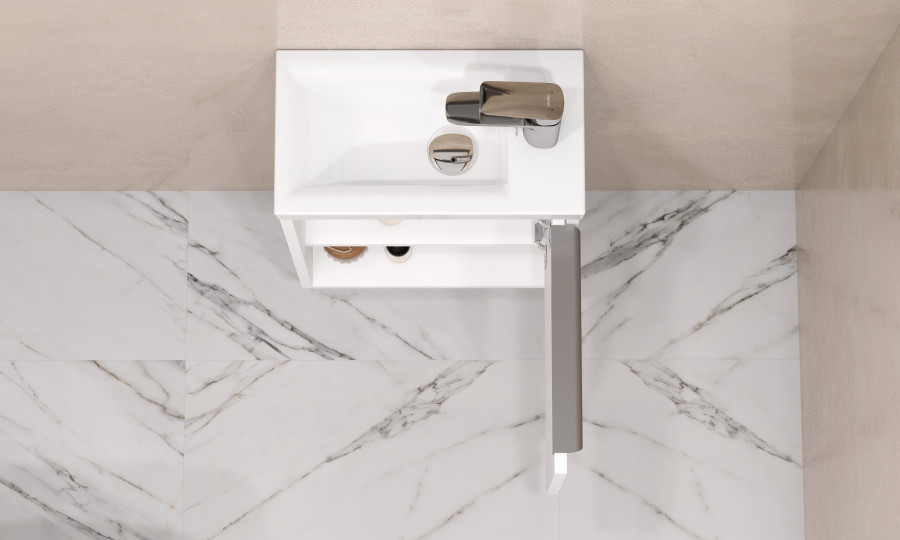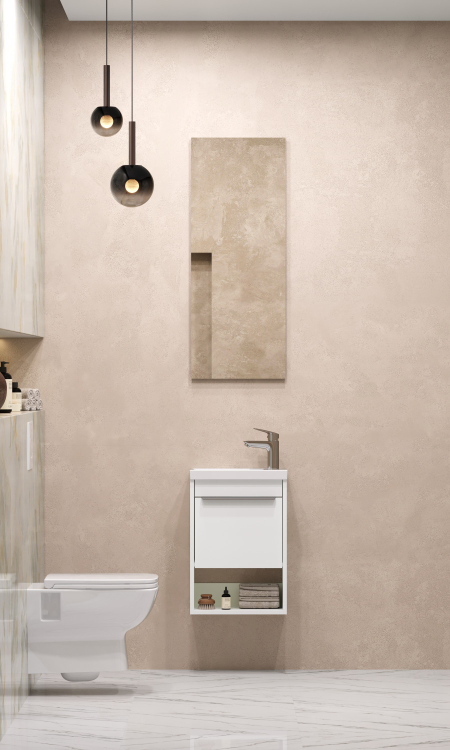 Тумбы для ванной комнаты коллекции Хоуп — это идеальное сочетание простоты линий и функциональности, которое преобразит ваше пространство. Каждая тумба в этой коллекции создана с вниманием к деталям и стремлением к гармонии, что делает их не только практичными, но и эстетически привлекательными. Элегантные линии и современный дизайн подчеркивают утонченность интерьера, а использование влагостойкой ЛДСП гарантирует долговечность и простоту в уходе. Удобная ручка добавляет нотку изысканности, а открытая ниша предоставляет возможность организовать пространство так, как вам удобно — будь то размещение любимых аксессуаров или необходимых принадлежностей. Корпус и фасад выполнены из влагостокой ЛДСП в белой матовой покраске полиэфирной краской ультрафиолетового отверждения. Ручка в данной коллекции в трендовом цвете gun metal (вороненый металл). Изготовленная из алюминия, она не только привлекает внимание своим эстетичным дизайном, но и имеет надежный и удобный хват. Тумбы коллекции Хоуп за счет своих цветовых решений в белом, древесном и светло-зеленом исполнении идеально впишутся в любой стиль ванной комнаты, от минимализма до классики, создавая атмосферу уюта и комфорта. Они не только помогут поддерживать порядок, но и станут ярким акцентом вашего интерьера. Регулируемые петли с доводчиком позволят использовать весь функционал тумбы бесшумно и с комфортом, а открытая ниша дает возможность убирать туда необходимы принадлежности, чтобы они всегда были под рукой. Высота полезного пространства - 160 мм. Реальный цвет изделий может отличаться от представленных изображений. Производитель оставляет за собой право в любой момент, без обязательного извещения, вносить изменения в комплектацию, дизайн и характеристики , не ухудшающие качество товара.
