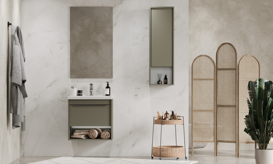 Тумбы для ванной комнаты коллекции Хоуп — это идеальное сочетание простоты линий и функциональности, которое преобразит ваше пространство. Каждая тумба в этой коллекции создана с вниманием к деталям и стремлением к гармонии, что делает их не только практичными, но и эстетически привлекательными. Элегантные линии и современный дизайн подчеркивают утонченность интерьера, а использование влагостойкой ЛДСП гарантирует долговечность и простоту в уходе. Удобная ручка добавляет нотку изысканности, а открытая ниша предоставляет возможность организовать пространство так, как вам удобно — будь то размещение любимых аксессуаров или необходимых принадлежностей. Корпус и фасад выполнены из влагостокой ЛДСП в светло-зеленом цвете. Ручка в данной коллекции в трендовом цвете gun metal (вороненый металл). Изготовленная из алюминия, она не только привлекает внимание своим эстетичным дизайном, но и имеет надежный и удобный хват. Тумбы коллекции Хоуп за счет своих цветовых решений в белом, древесном и светло-зеленом исполнении идеально впишутся в любой стиль ванной комнаты, от минимализма до классики, создавая атмосферу уюта и комфорта. Они не только помогут поддерживать порядок, но и станут ярким акцентом вашего интерьера. Направляющие полного выдвижения скрытого монтажа с доводчиком позволят использовать весь функционал ящиков бесшумно и с комфортом, а открытая ниша дает возможность убирать туда необходимы принадлежности, чтобы они всегда были под рукой. Высота полезного пространства - 160 мм. Реальный цвет изделий может отличаться от представленных изображений. Производитель оставляет за собой право в любой момент, без обязательного извещения, вносить изменения в комплектацию, дизайн и характеристики , не ухудшающие качество товара.