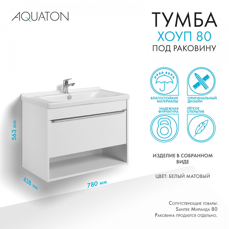 Тумба подвесная Aquaton Хоуп 780x438x563 белый (1.A287.3.01H.P2B.0)