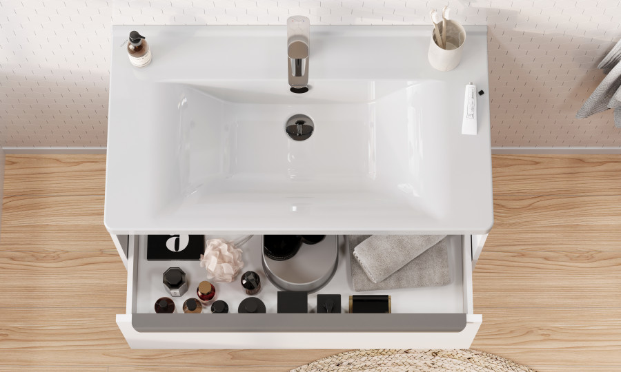 Тумбы для ванной комнаты коллекции Хоуп — это идеальное сочетание простоты линий и функциональности, которое преобразит ваше пространство. Каждая тумба в этой коллекции создана с вниманием к деталям и стремлением к гармонии, что делает их не только практичными, но и эстетически привлекательными. Элегантные линии и современный дизайн подчеркивают утонченность интерьера, а использование влагостойкой ЛДСП гарантирует долговечность и простоту в уходе. Удобная ручка добавляет нотку изысканности, а открытая ниша предоставляет возможность организовать пространство так, как вам удобно — будь то размещение любимых аксессуаров или необходимых принадлежностей. Корпус и фасад выполнены из влагостокой ЛДСП в белой матовой покраске полиэфирной краской ультрафиолетового отверждения. Ручка в данной коллекции в трендовом цвете gun metal (вороненый металл), она выполнена из алюминия Тумбы коллекции Хоуп за счет своих цветовых решений в белом, древесном и светло-зеленом исполнении идеально впишутся в любой стиль ванной комнаты, от минимализма до классики, создавая атмосферу уюта и комфорта. Они не только помогут поддерживать порядок, но и станут ярким акцентом вашего интерьера. Направляющие полного выдвижения скрытого монтажа с доводчиком позволят использовать весь функционал ящиков бесшумно и с комфортом, а открытая ниша дает возможность убирать туда необходимы принадлежности, чтобы они всегда были под рукой. Высота полезного пространства - 160 мм. Реальный цвет изделий может отличаться от представленных изображений. Производитель оставляет за собой право в любой момент, без обязательного извещения, вносить изменения в комплектацию, дизайн и характеристики , не ухудшающие качество товара.