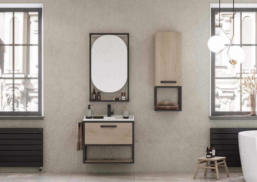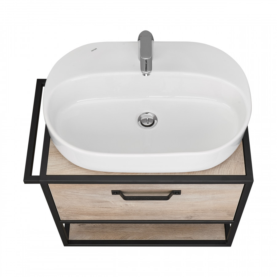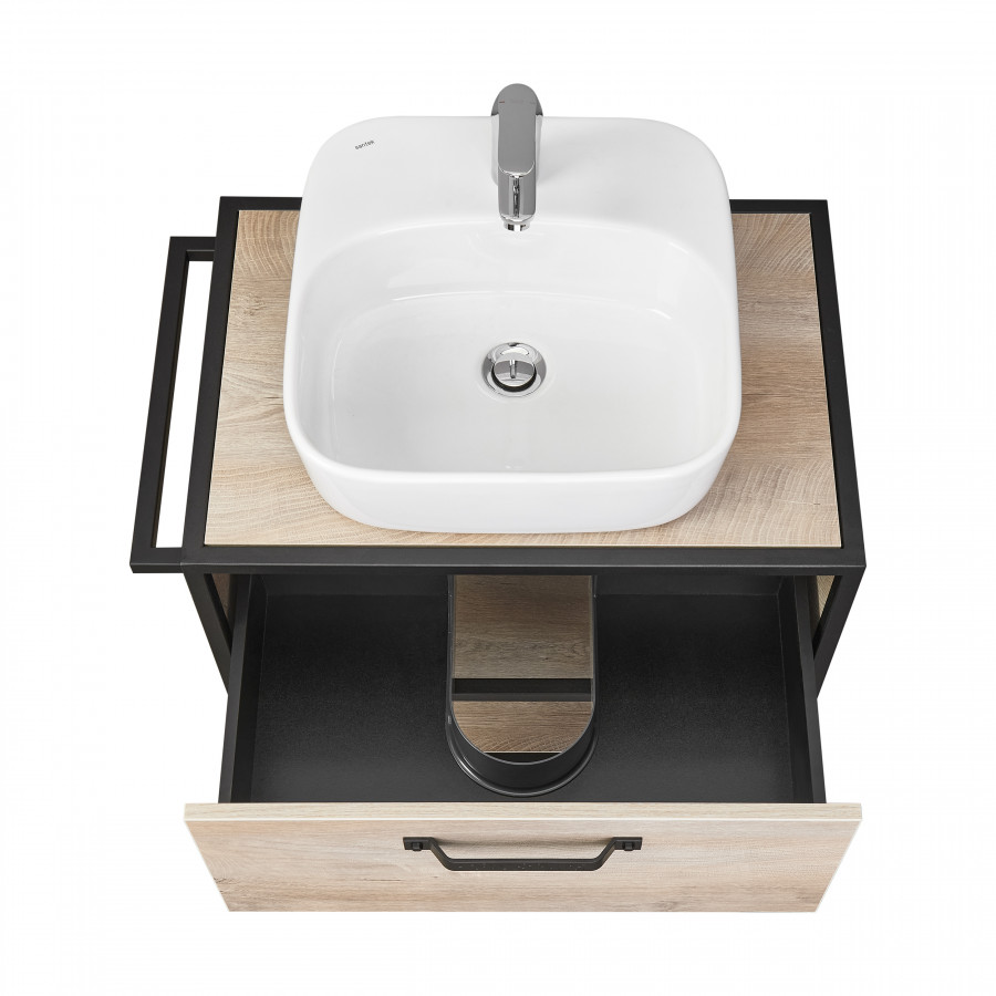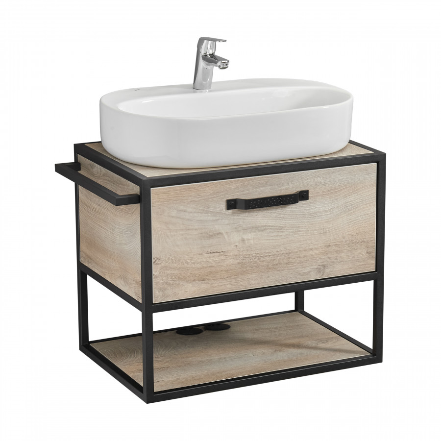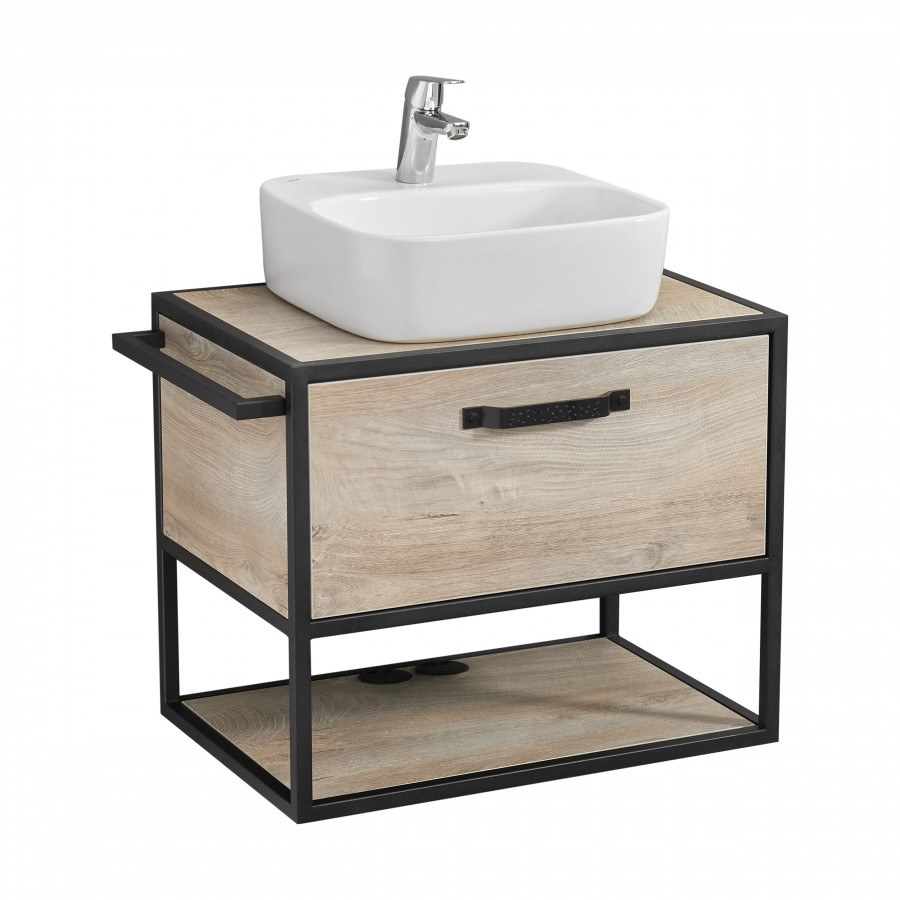 Тумба Лофт Фабрик 65 в цвете Дуб Эндгрейн – это сочетание натурального древесного декора и благородства металла. Удобный вместительный ящик, снабженный направляющими плавного выдвижения, и открытая нижняя полка позволят разместить все необходимое. Для данной тумбы доступно два варианта комплектации: с раковиной Фабиа 65 из прочного литьевого мрамора и с накладной керамической раковиной на столешницу (столешница заказывается отдельно). Оригинальная ручка идеально сочетается с металлическими черными профилями и полотенцедержателем. Полотенцедержатель можно установить опционально по желанию клиента слева или справа.