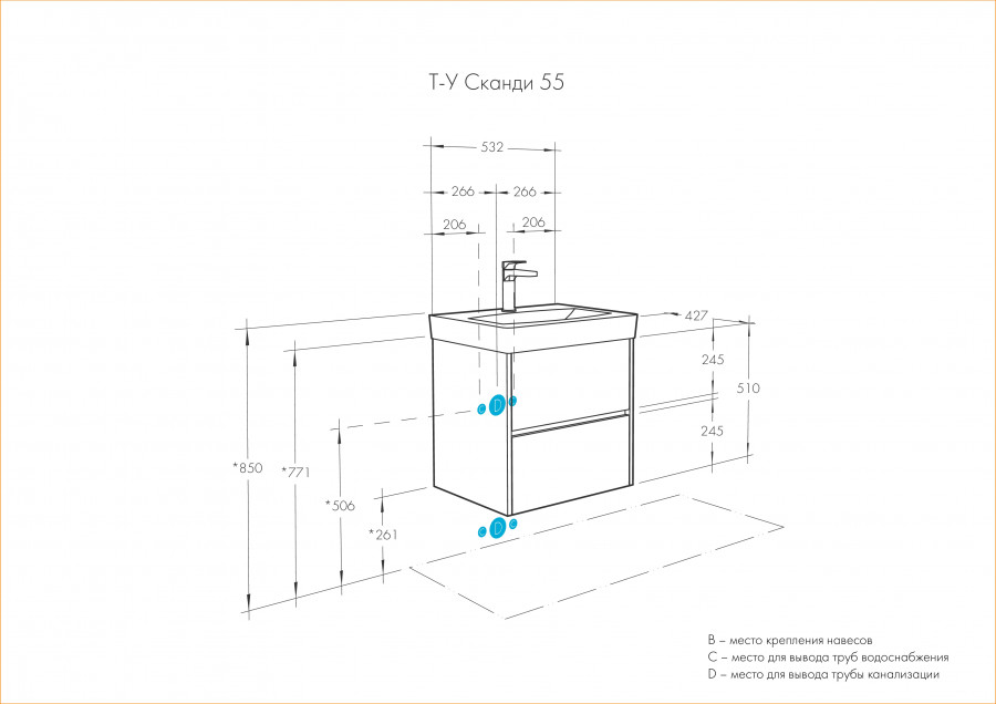 Тумба Сканди 55 выполнена в популярном минималистичном скандинавском стиле. Корпус тумбы выполнен из влагостойкой ЛДСП в белой матовой покраске, а фасады в белой глянцевой покраске. Конструктивно тумба состоит из 2 вместительных ящиков, установленных на направляющие с интегрированной системой push-to-open для комфортного использования. На тумбе нет выступающих деталей и фурнитуры, открытие ящиков реализовано нажатием на фасад. К тумбе идеально подходит белоснежная раковина Адриана от бренда Santek. Раковина продается отдельно.