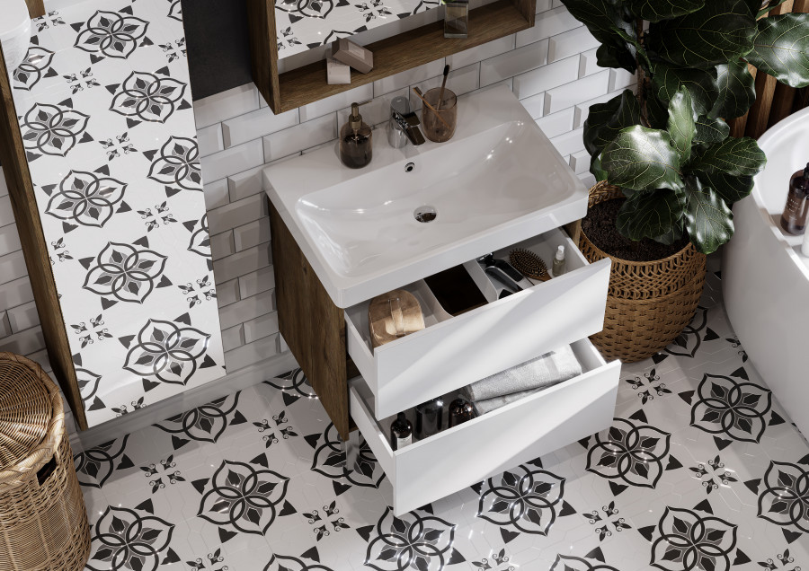 Тумба подвесная Aquaton Сканди 682x427x591 белый, дуб рустикальный (1.A251.8.01S.DZ9.0)
