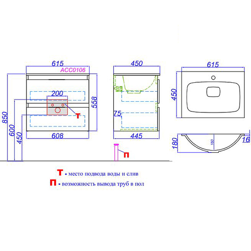 Тумба подвесная Aqwella Accent 608x445x558 белый (ACC0106W)