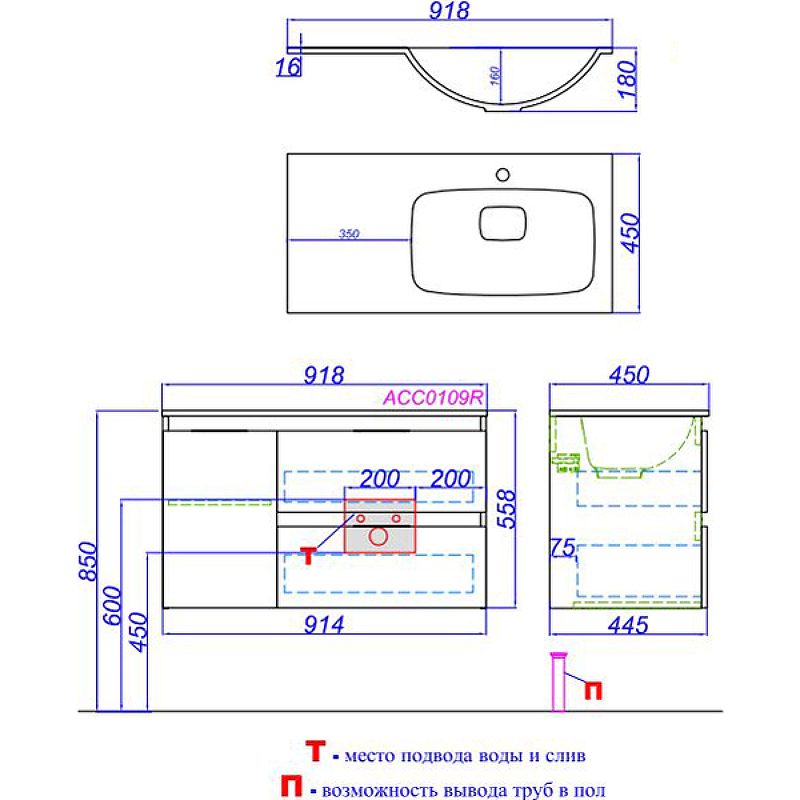 Тумба подвесная Aqwella Accent 914x445x558 белый (ACC0109RW)
