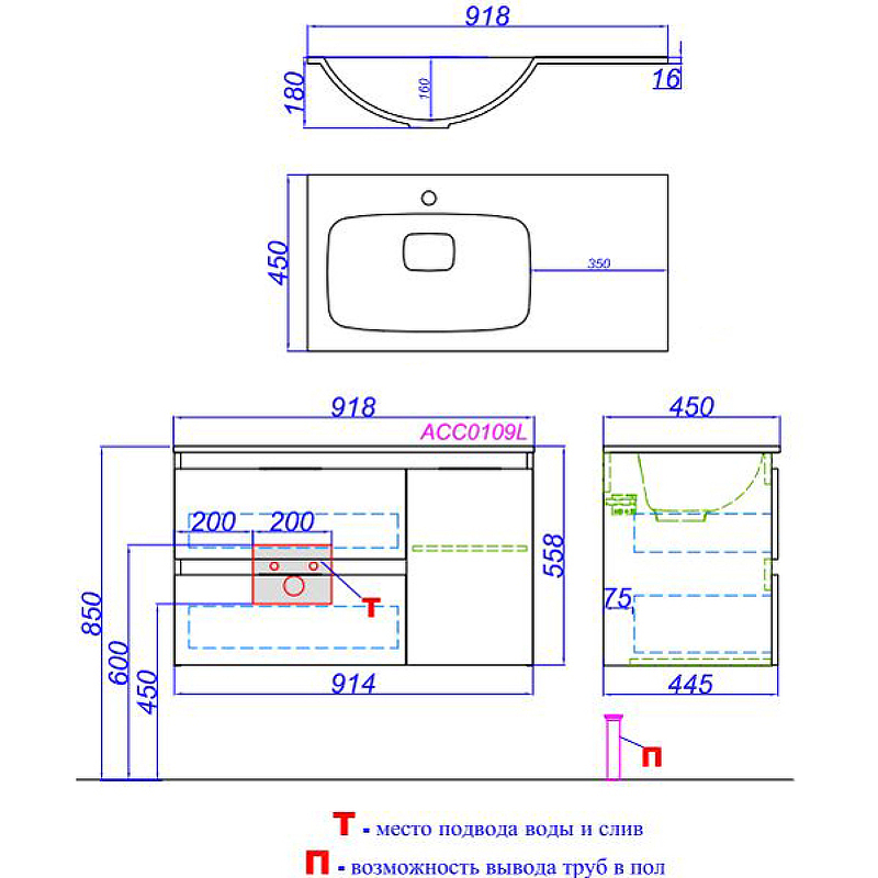 Тумба подвесная Aqwella Accent 914x450x558 дуб золотой (ACC0109LDZ)