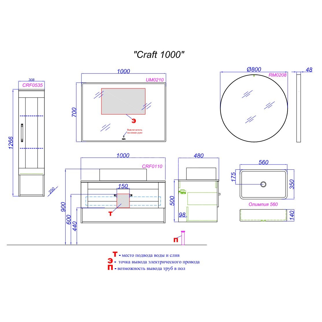 Тумба подвесная Aqwella Craft 1000x480x610 дуб балтийский (CRF0110DB)