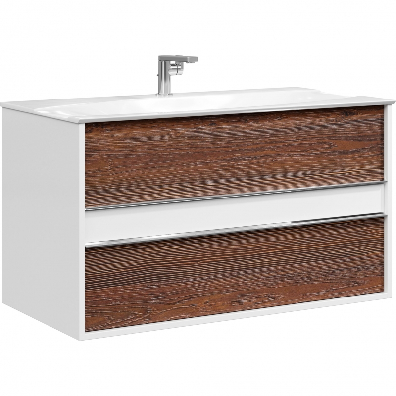 Тумба подвесная Aqwella Evolution 1000x520x570 темное дерево/белый глянец (EV0110CD)