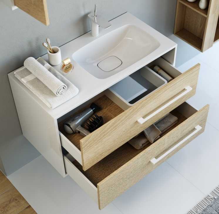 Подвесная тумба Aqwella Майами 90 с раковиной Malaga 90, с чашей.