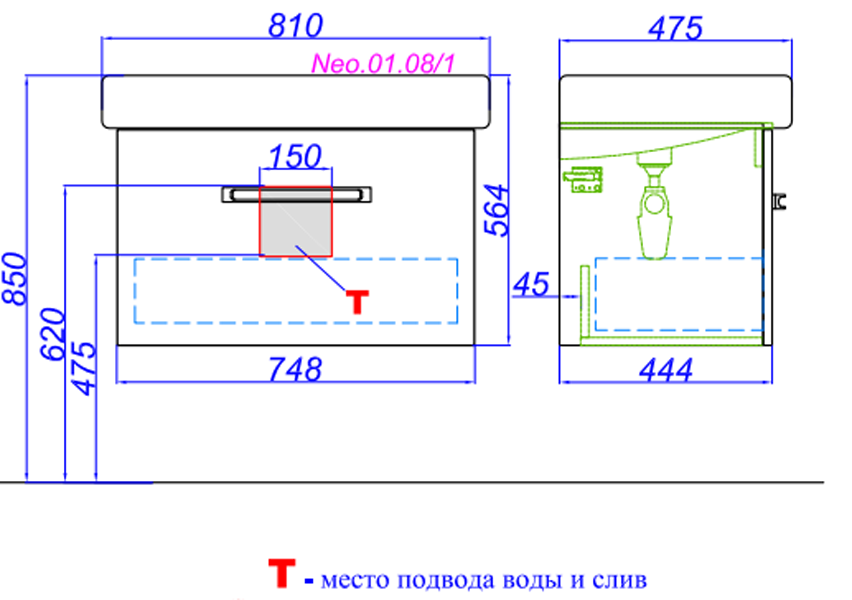 Тумба подвесная Aqwella Neo 750x445x465 белый (NEO01081)