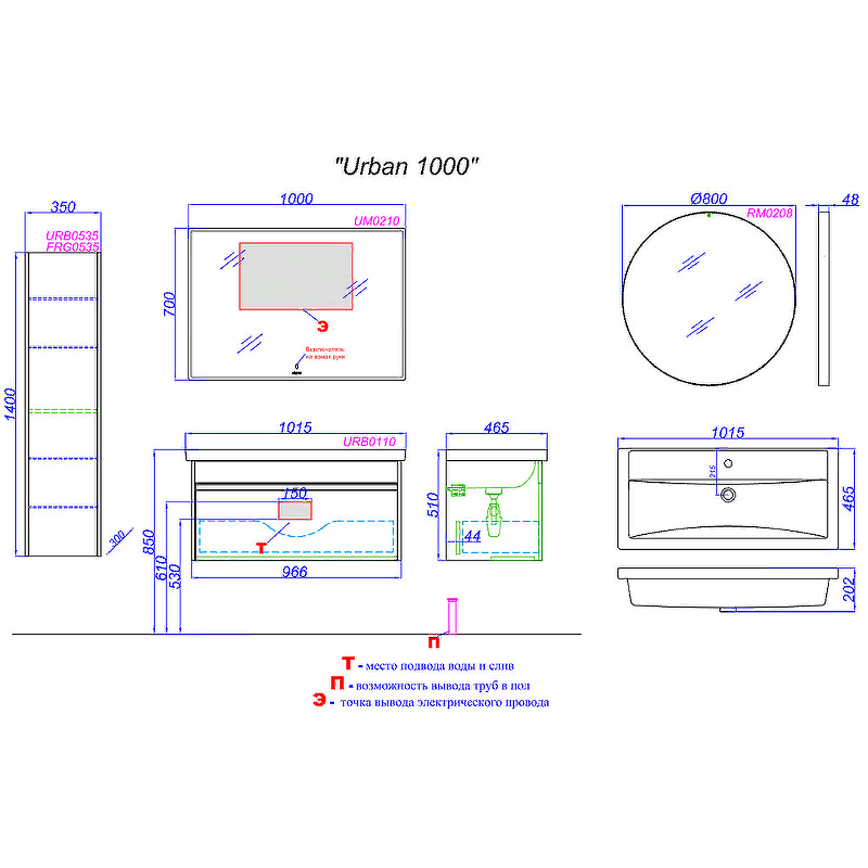 Тумба подвесная Aqwella Urban 1015x465x510 дуб давос натуральный (URB0110DD)