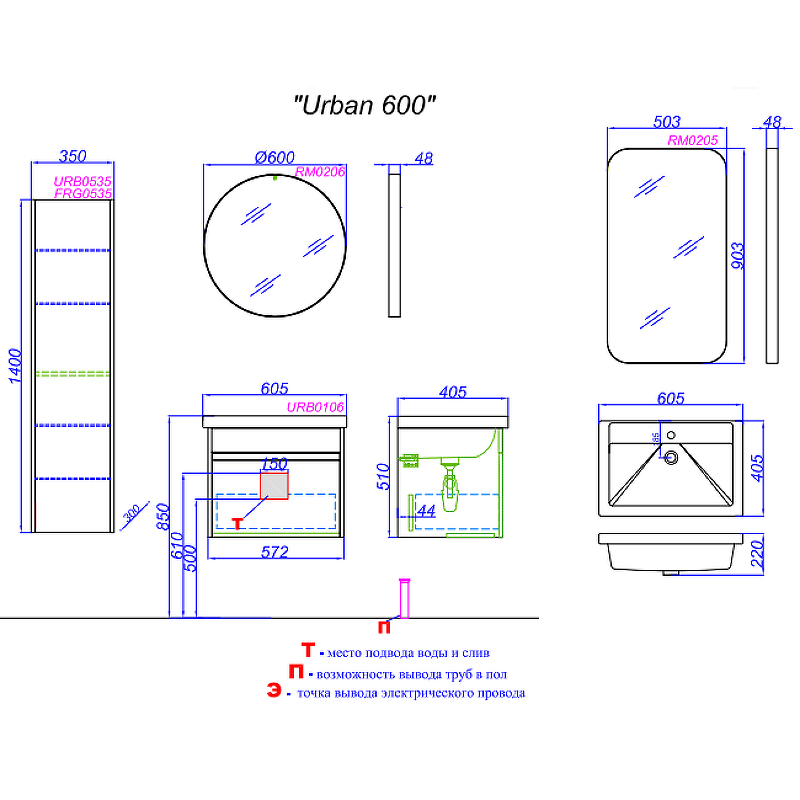 Тумба подвесная Aqwella Urban 605x405x510 дуб давос натуральный (URB0106DD)