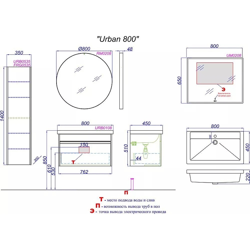 Тумба подвесная Aqwella Urban 800x450x510 белый (URB0108W)