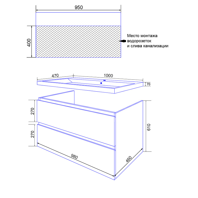 Тумба подвесная Azario с раковиной Мила 100 с раковиной Monte 100 (CS00089921)